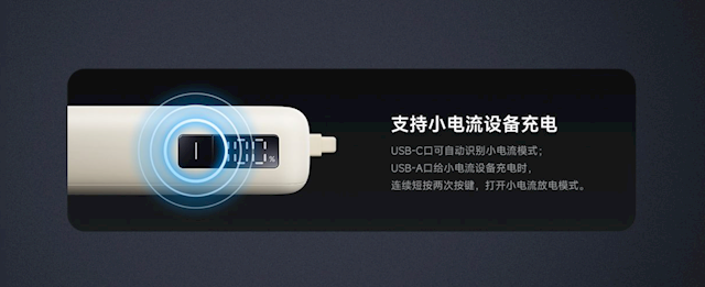 接口方面,充电宝拥有USB-C、USB-A 双接口,支持三台设备同时充电,总功率达15W。